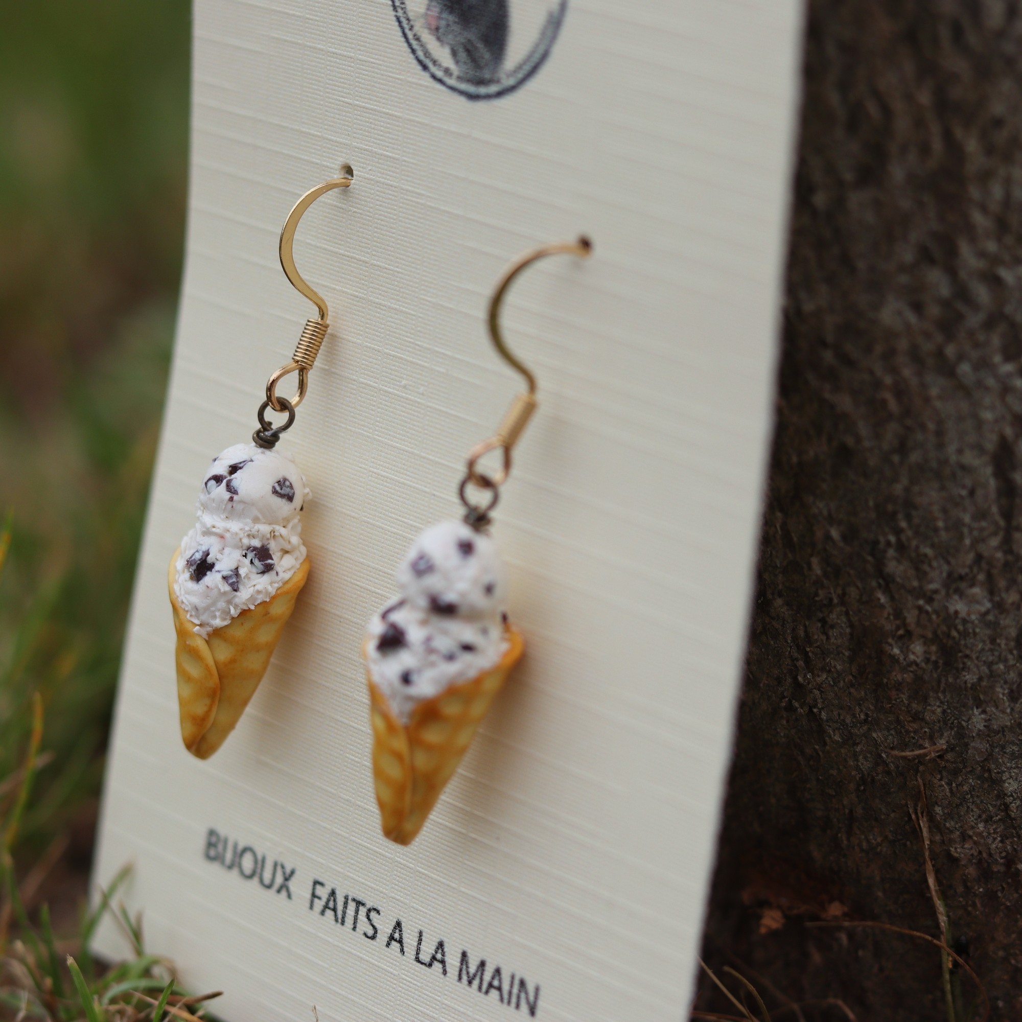 Boucles d’oreilles Cornet de Glace Vanille – Bijoux Gourmands Fait Main en Argile Polymère