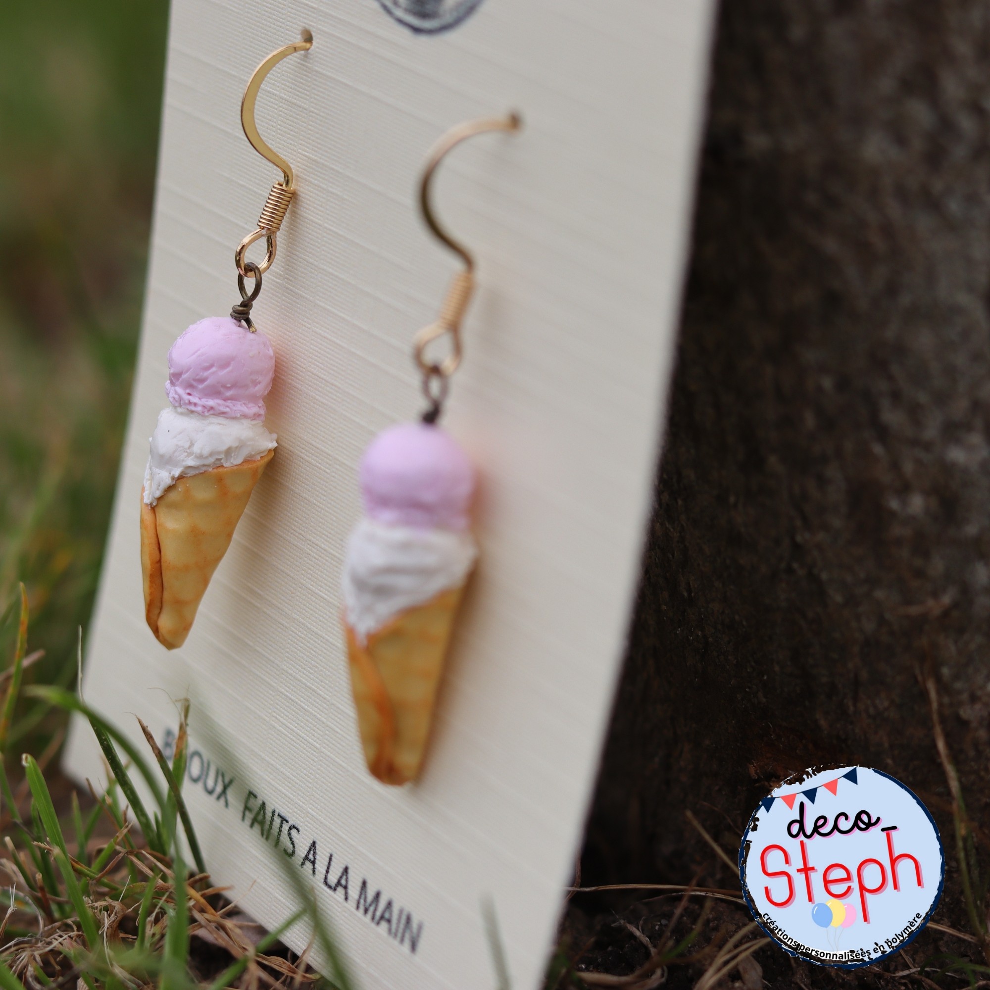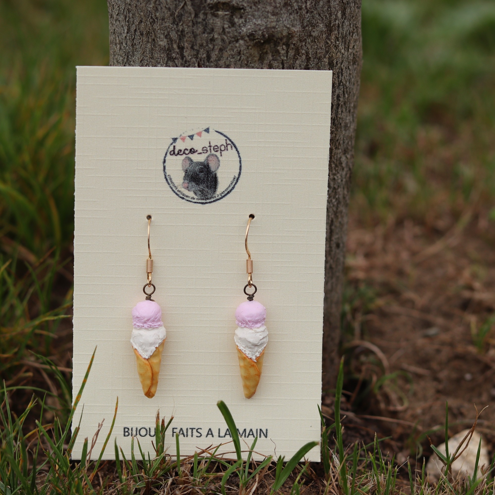 Boucles d’oreilles Cornet de Glace Vanille – Bijoux Gourmands Fait Main en Argile Polymère